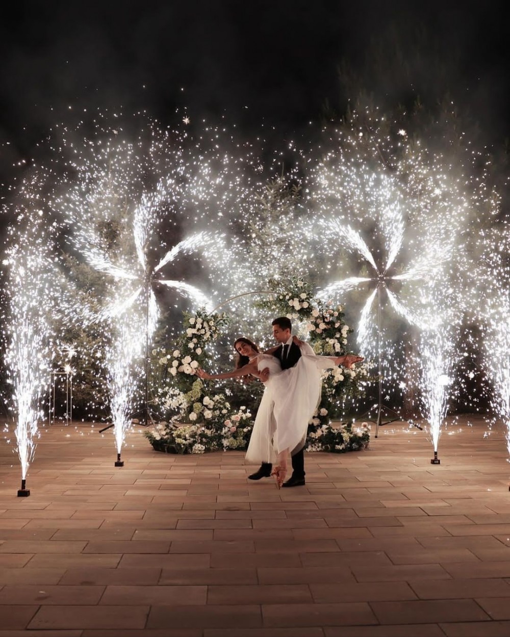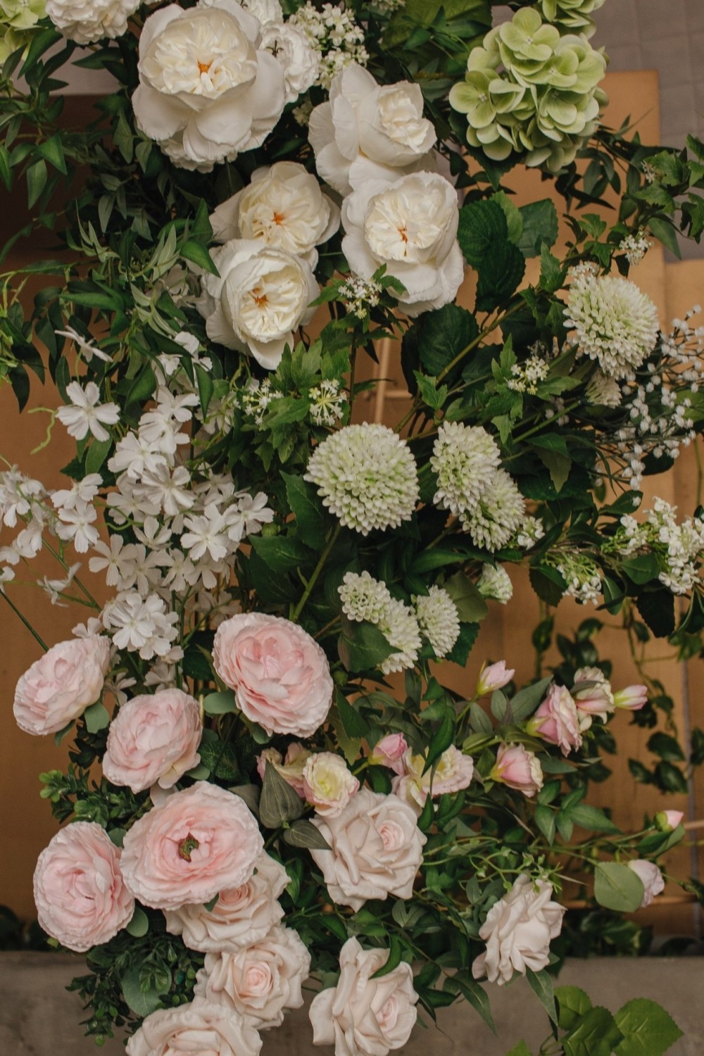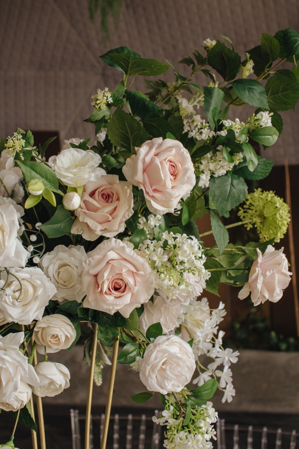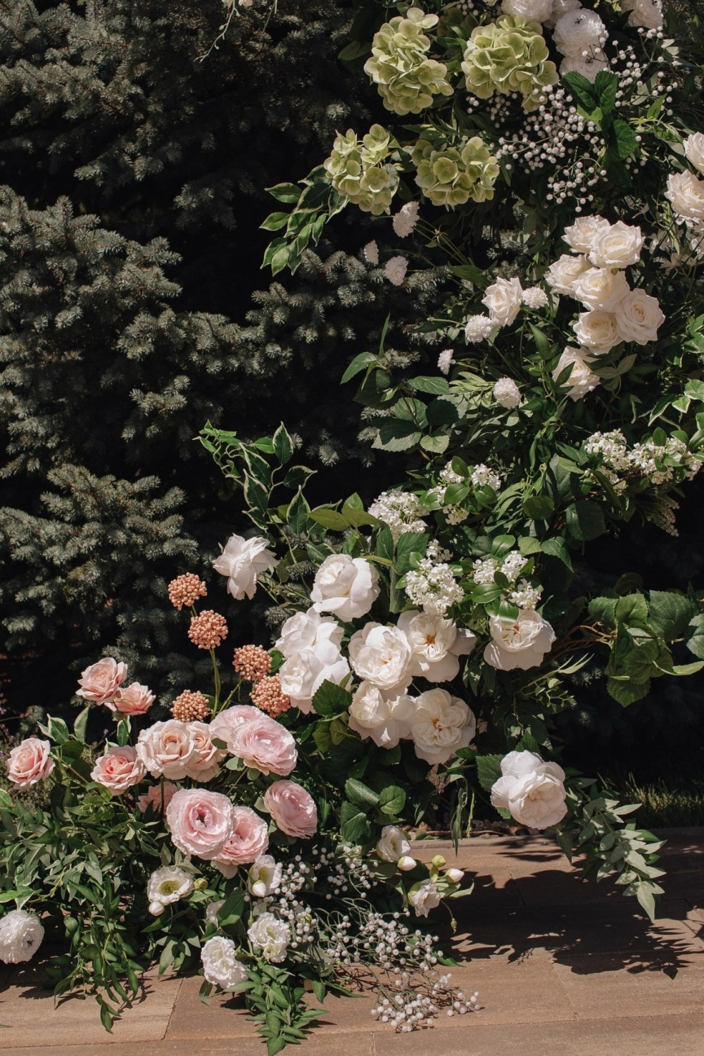 Нежная концепция в пудровых тонах с добавлением соочного лаймового результата. В основе дизайна легла форма колец, как символ вечной любви. Ее мы использовали на выездной регистрации. Лаконичная арка-кольцо прекрасно вписалась в воплощение. И обыграли похожую форму в дизайне стола для молодых. Стойки с талией на столах привели к общему положению гостей.
